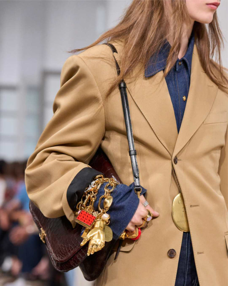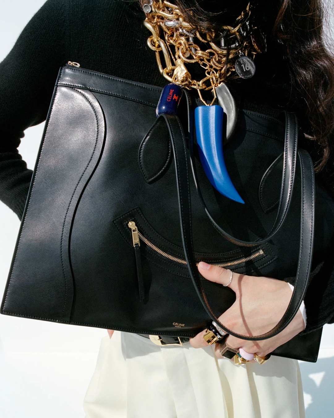 Leather goods held the emotional center of the debut. Philo’s iconic Celine Luggage bag returned as the New Celine Luggage Smile Variation, its curved zipper forming a smile. New proportions, glossy lambskin, and shades of ultra blue and citrus set the tone for its global release. Rider has brought to Celine not rupture, but transition, a more human expression of Celine’s enduring elegance.