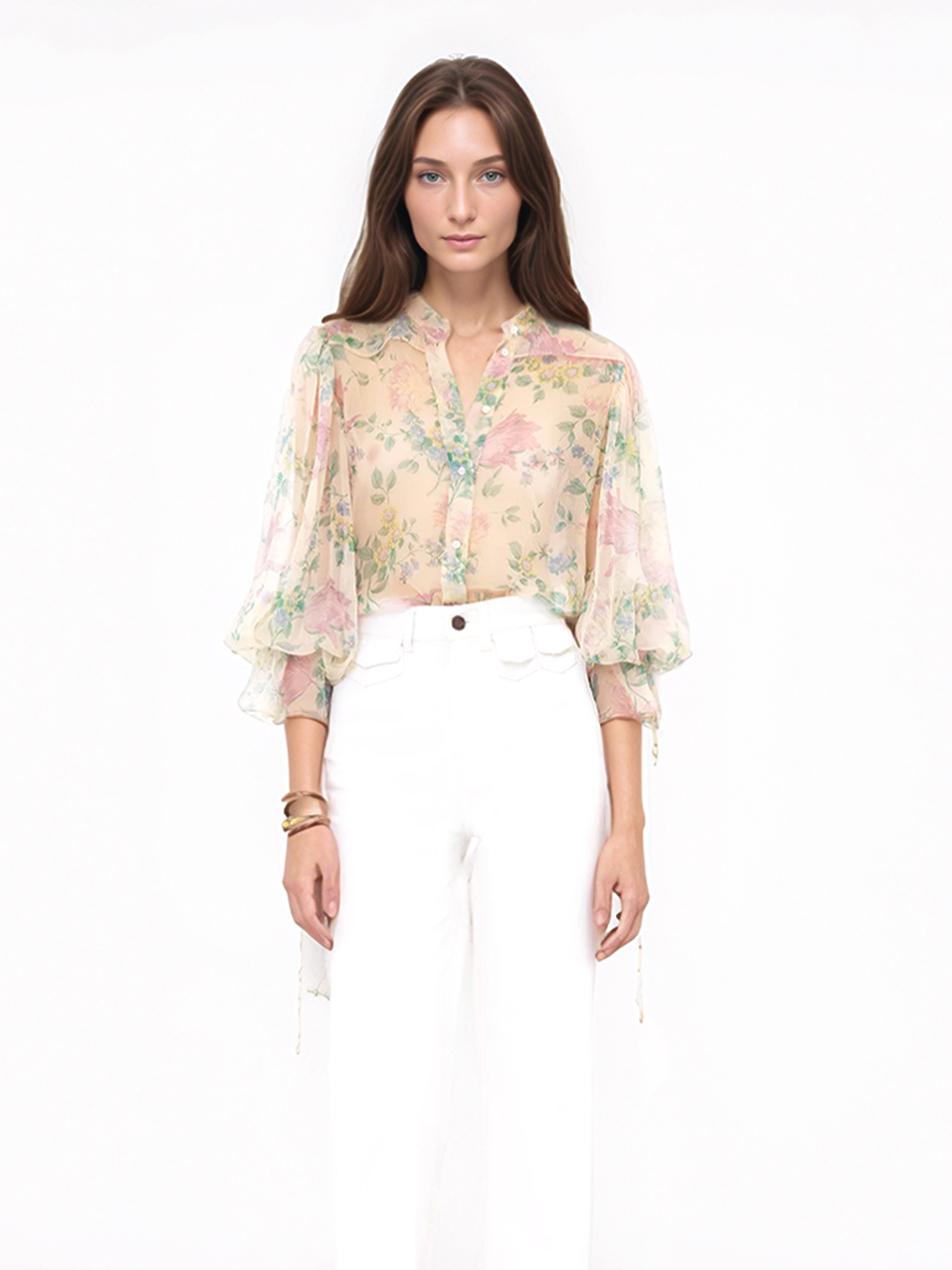 Chloé women's shirts are an embodiment of freedom, style, and unwavering quality. They are a reflection of the OTTODISANPIETRO woman - one who seeks treasures in every piece she wears and embraces luxury fashion. The universal beauty of Chloé's white shirts complements our philosophy of subtle, soft, and romantic elegance.