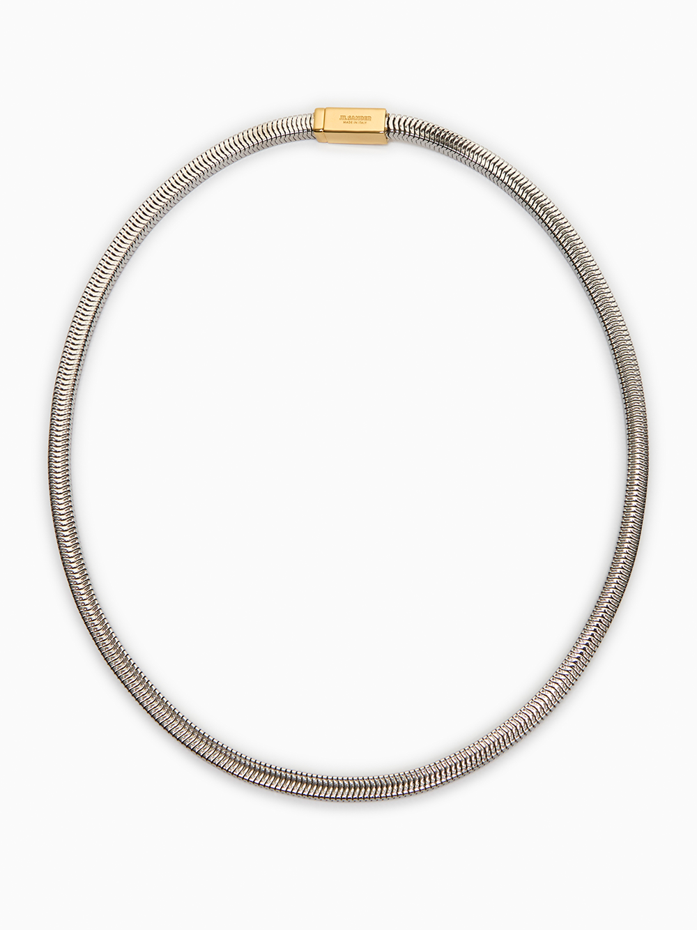 Jil Sander accessories bring you the same quiet luxury that defines the brand’s clothing and footwear. These pieces elevate your outfits without the need for much. Jil Sander jewellery—simple earrings, bracelets, and (simply) minimal necklaces—are designed in gold and silver, the lines are clean, the shapes geometric, and the effect contemporary. There’s nothing loud, just pieces that fit into your life to match your favourite dress or jacket.