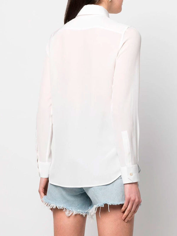 Labels like Valentino or Victoria Beckham explore a side of the women’s shirt as a romantic symbol. Their delicate, elegant designs explore the utmost expression of modern femininity. The different bows and lapels further reinforce their poetic notions of the shirt.