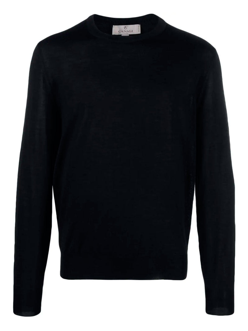 Canali´s fine-knit jumper in midnight blue merino wool. Featuring ribbed-knit edge, crew neck, long sleeves and straight hem.
