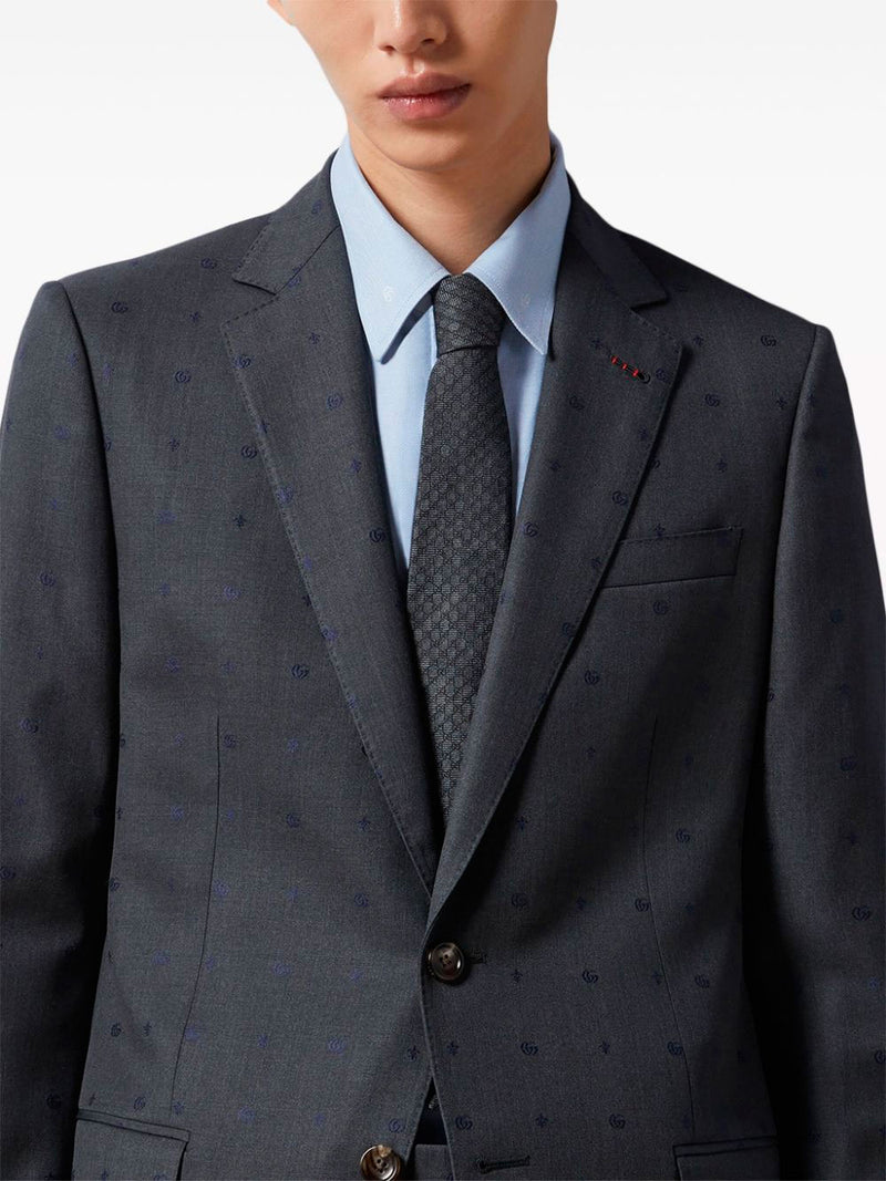 Gucci´s interlocking G tie in black silk-wool blend with patterned jacquard. Pointed tip, wraparound style and adjustable fit.