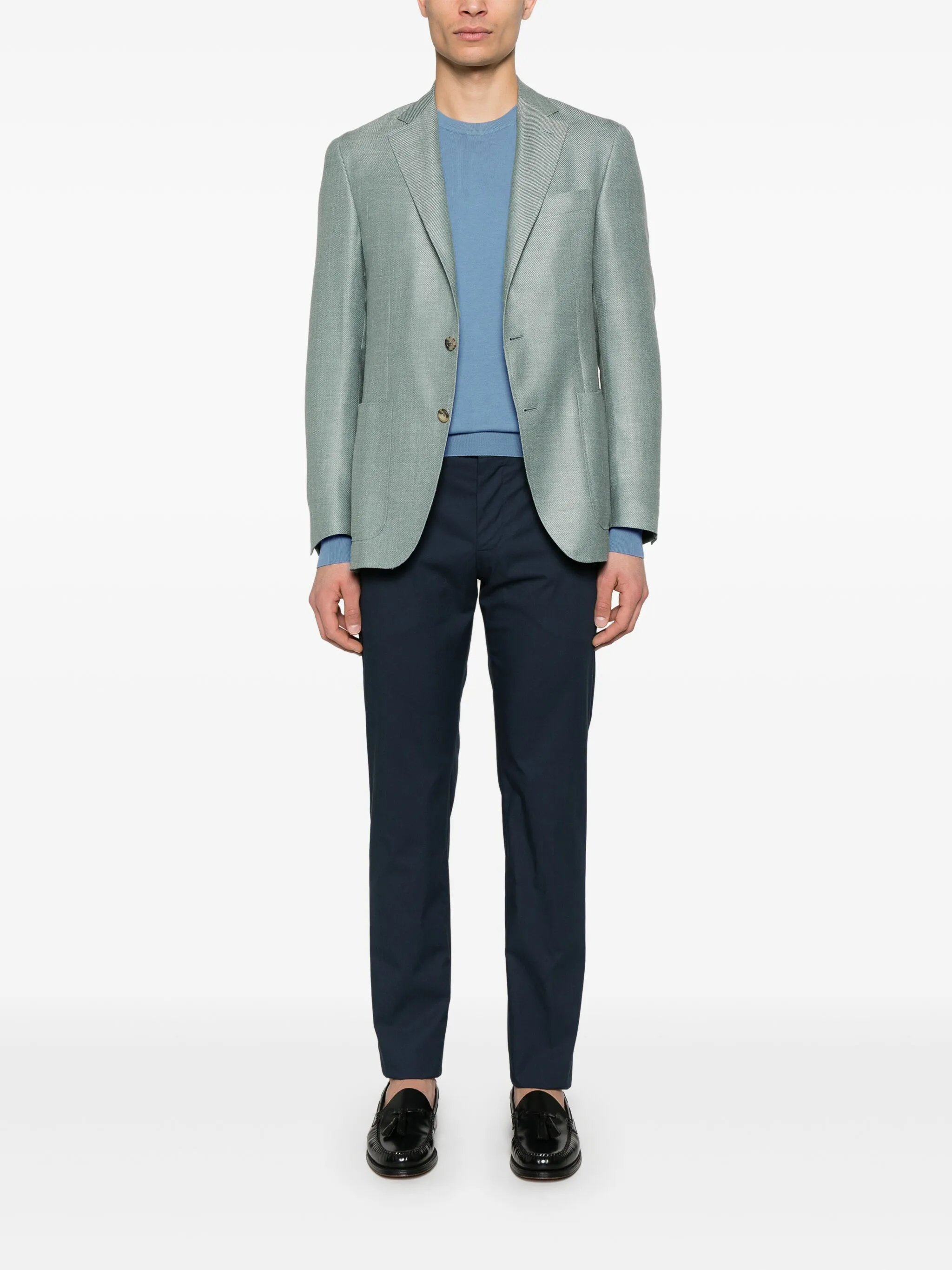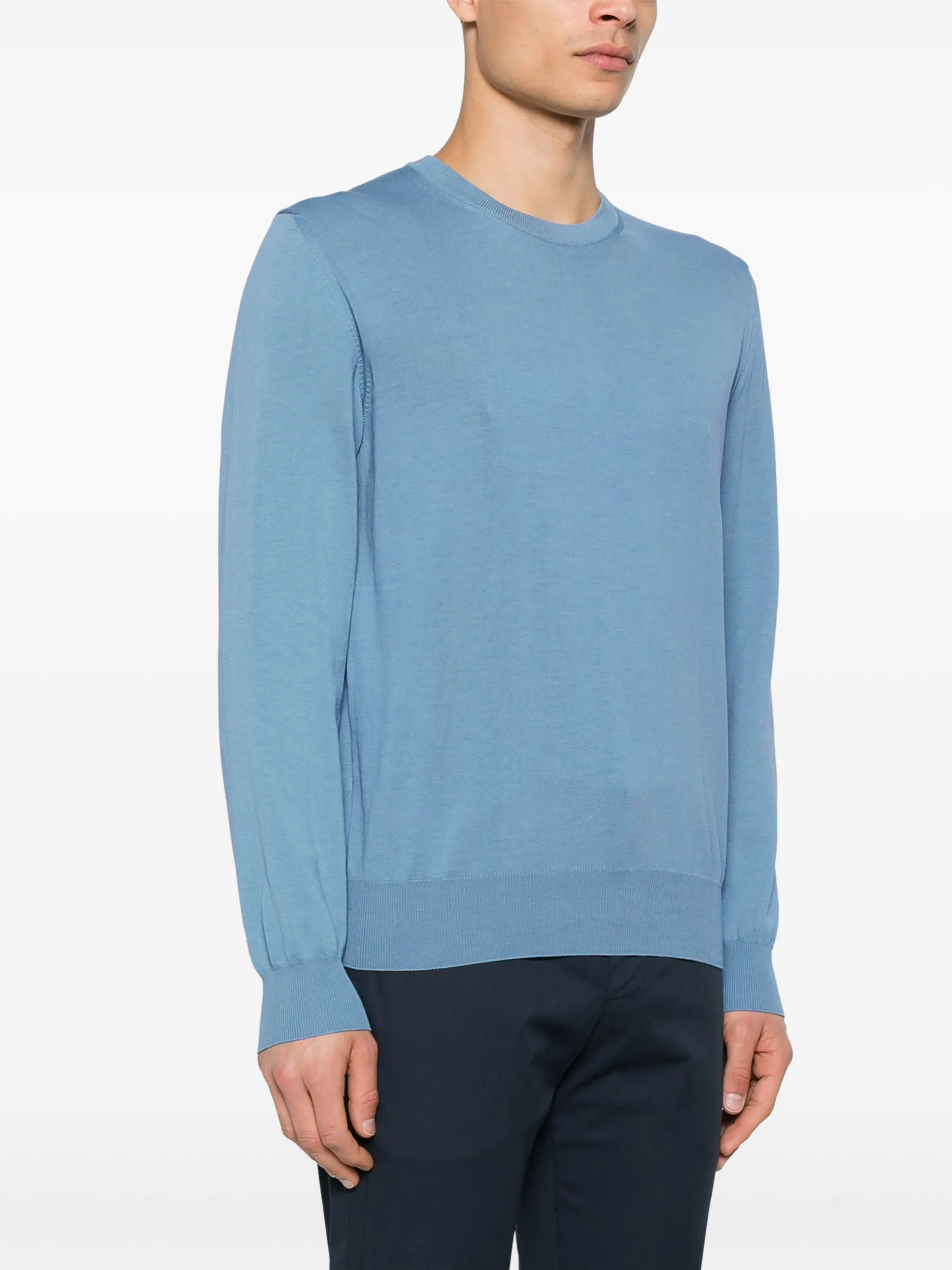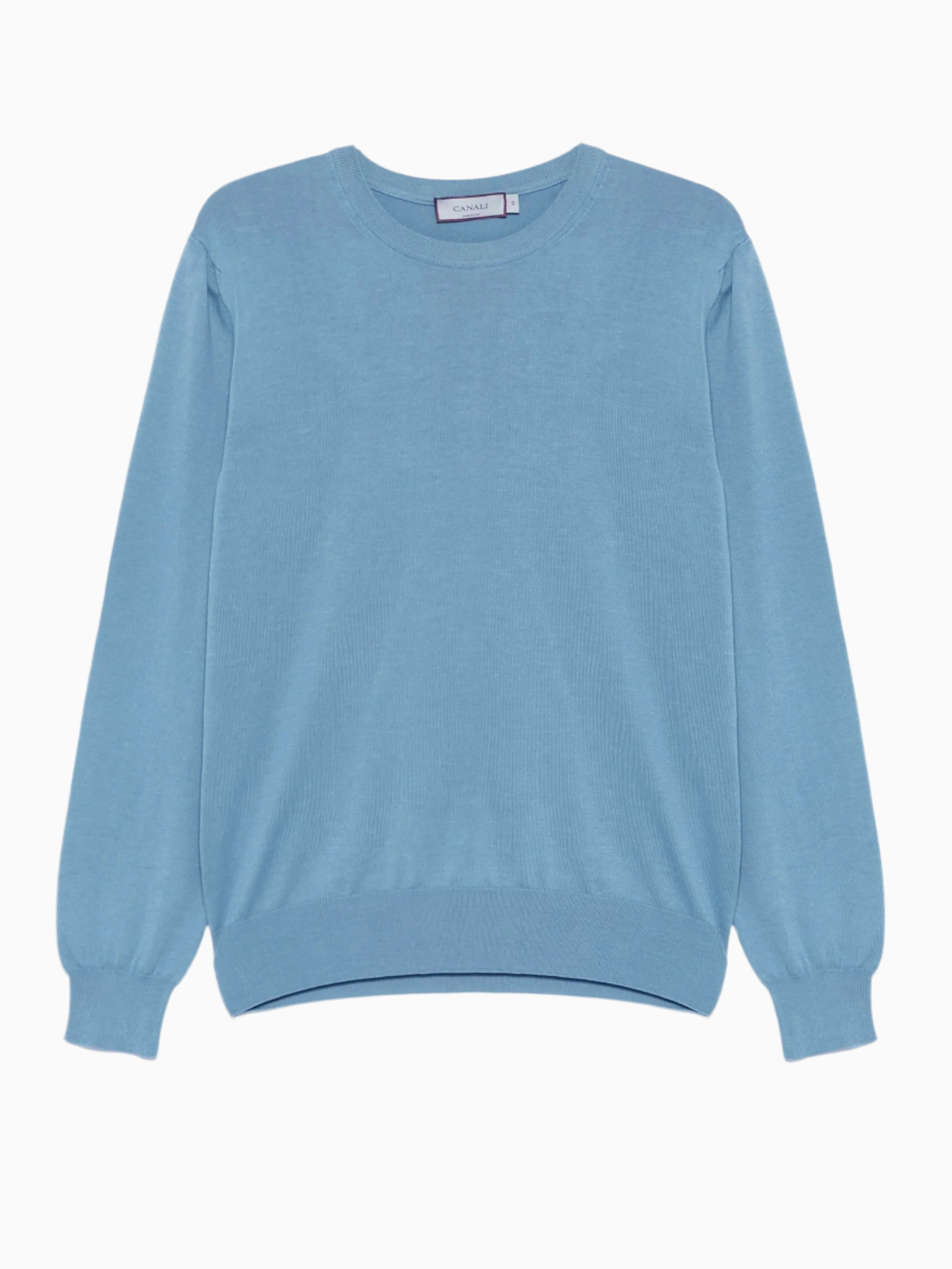 Jersey de Canali con cuello redondo. Confeccionado en algodón color turquesa con cuello redondo y cuello y puños de canalé.