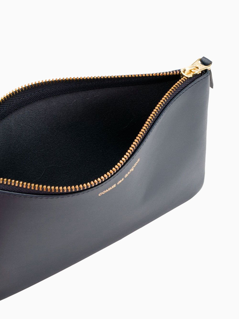 Billetero clásico de Comme Des Garçons Wallet. Confeccionado en piel azul marino con cierre de cremallera, bolsillo para monedas, ranuras para tarjetas y logo grabado en el interior.
