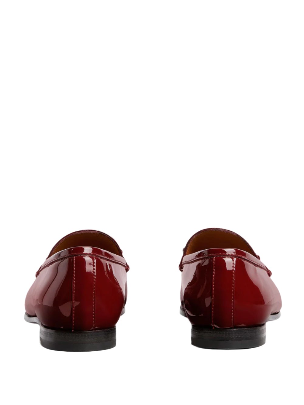 Mocasines Gucci en piel Rosso Ancora. Adornados con el icónico Horsebit, estos mocasines están confeccionados en charol rojo Rosso Ancora, herrajes en tono dorado claro y suela de cuero.