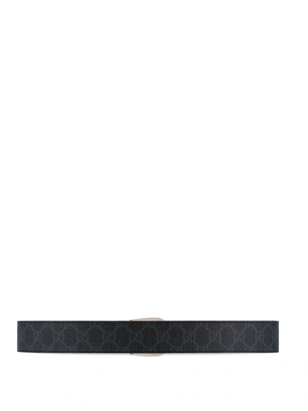 Cinturón de Gucci de piel negra adornado con lona supreme GG y placa con el logotipo de la firma Interlocking G. El cinturón presenta herrajes en color paladio, perforaciones, cierre de hebilla frontal y ajuste regulable. El cinturón mide 3,5 cm de ancho.