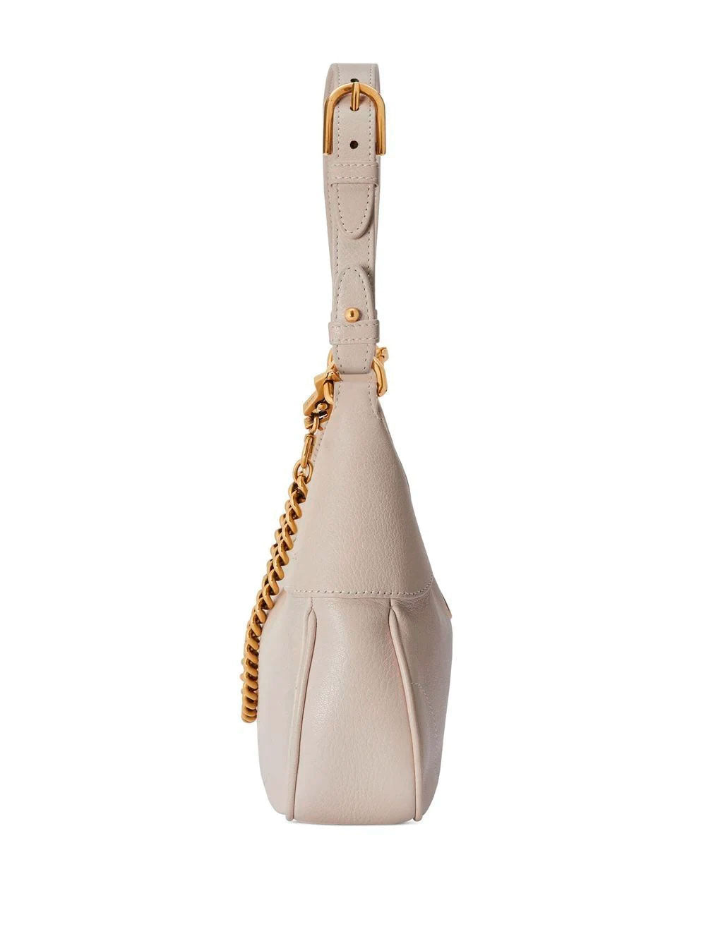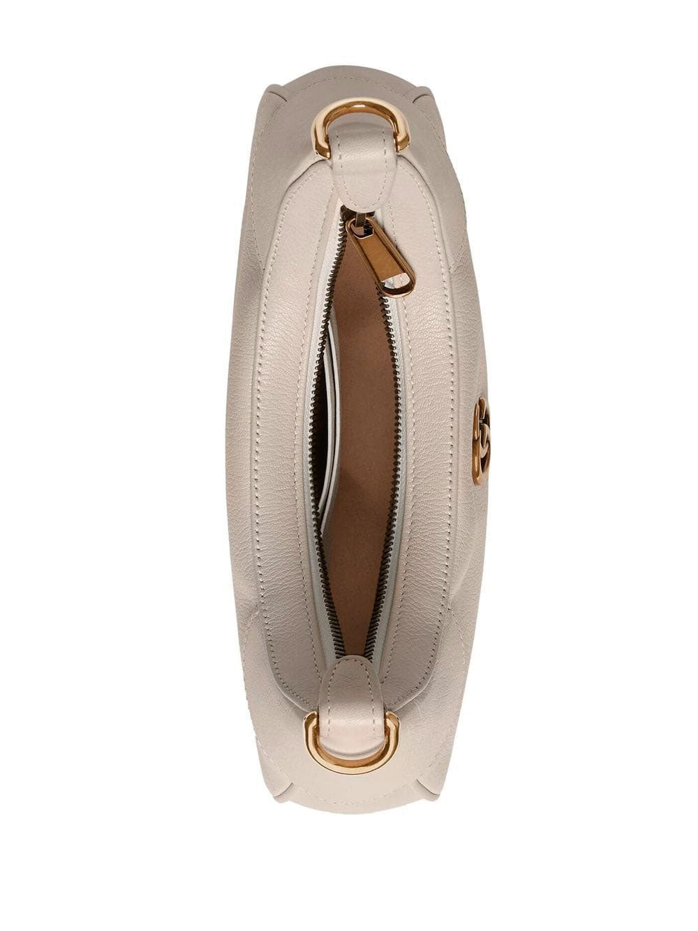 Bolso de hombro Small Aphrodite de Gucci. Confeccionado en piel flexible, se imagina en una nueva silueta en forma de media luna, que alberga el emblema de la Doble G en tono dorado de la marca.