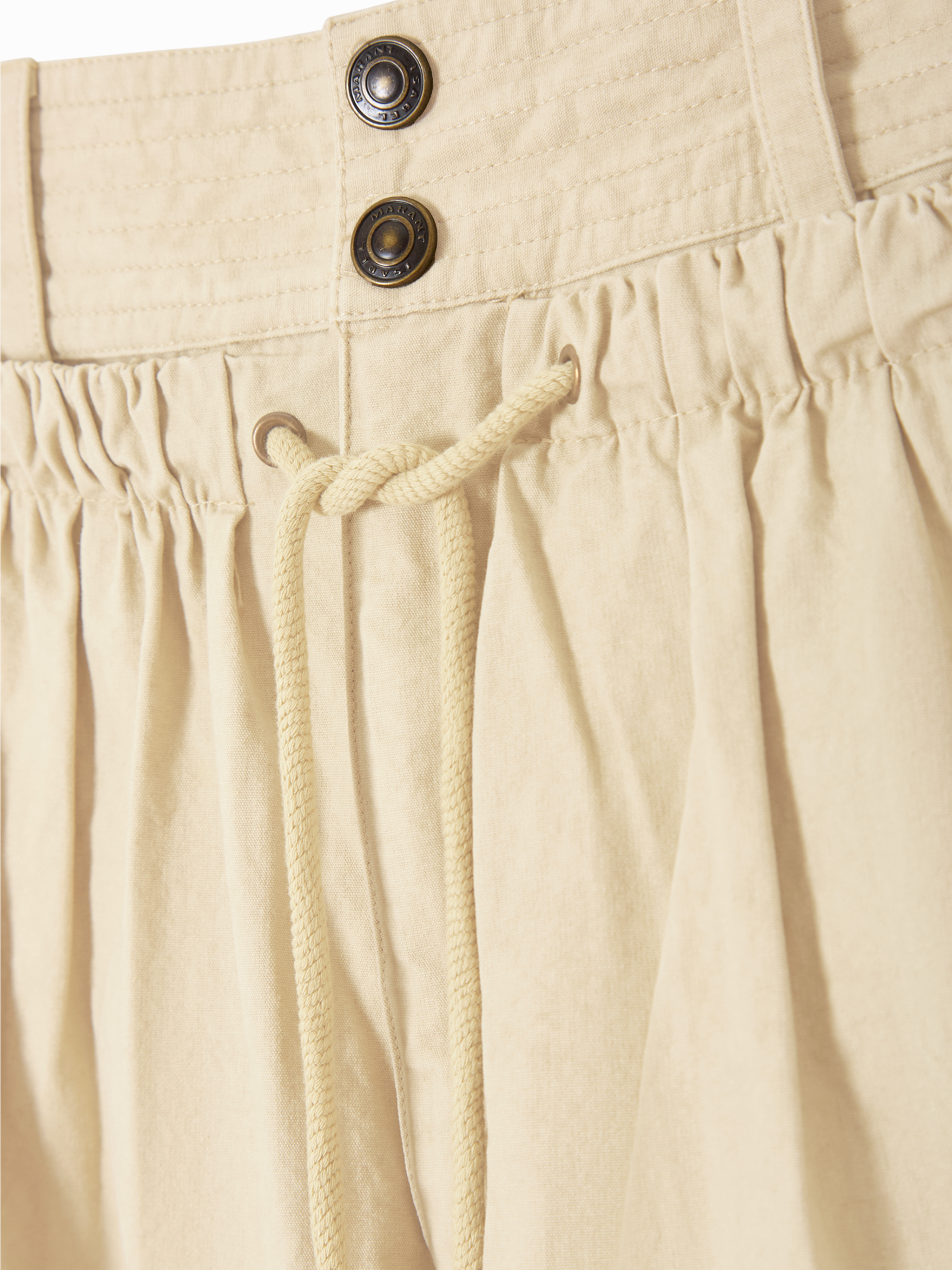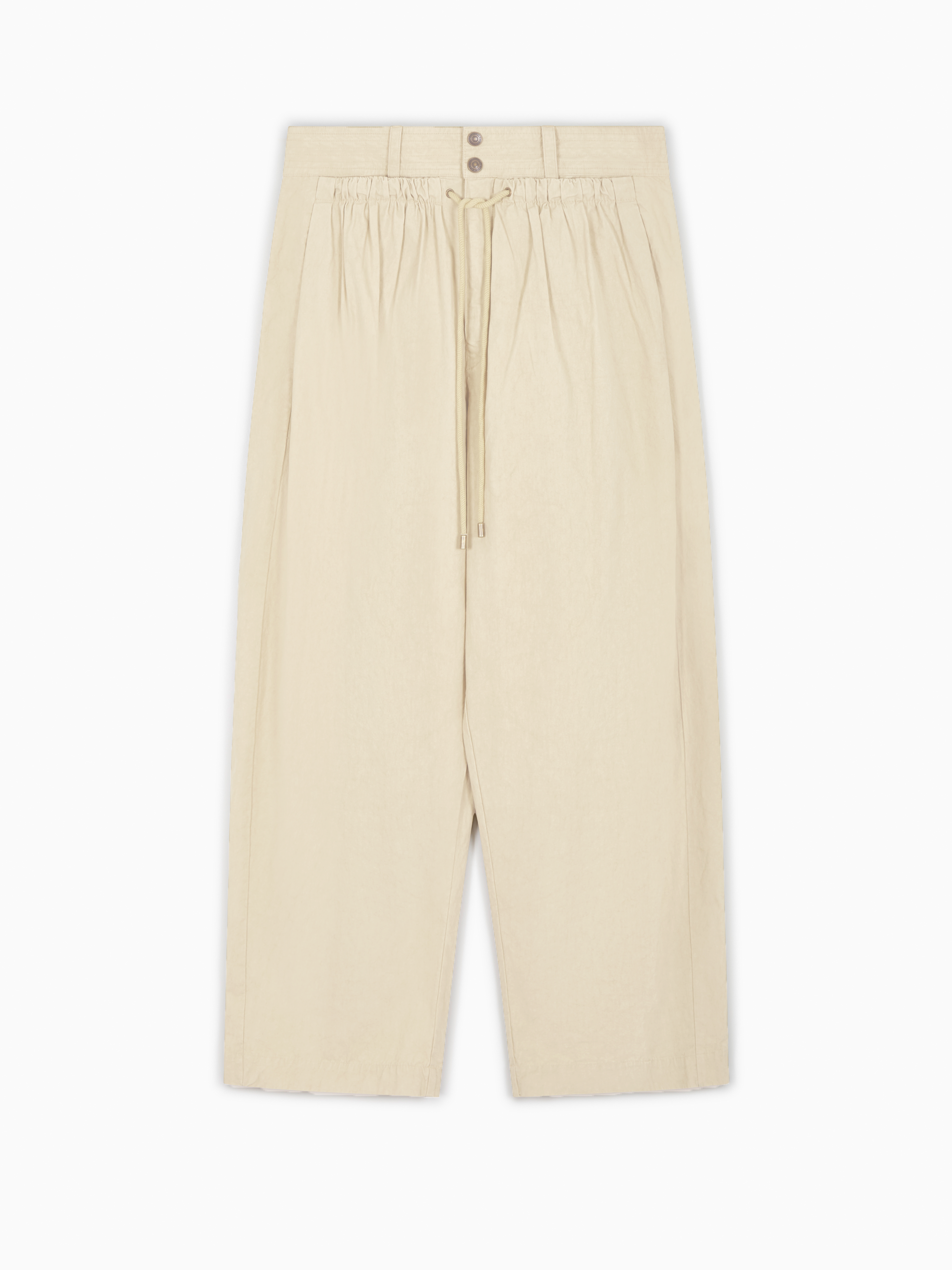 Pantalones Inayaf corset de Isabel Marant. Confeccionados en algodón color crudo, presentas una cinturilla cosida con trabillas, cierre grabado con cremallera y botones a presión, y un corte holgado. Presenta frunces y cordones en la parte delantera, ojales y acabados en cordón metálico y bolsillos franceses laterales.