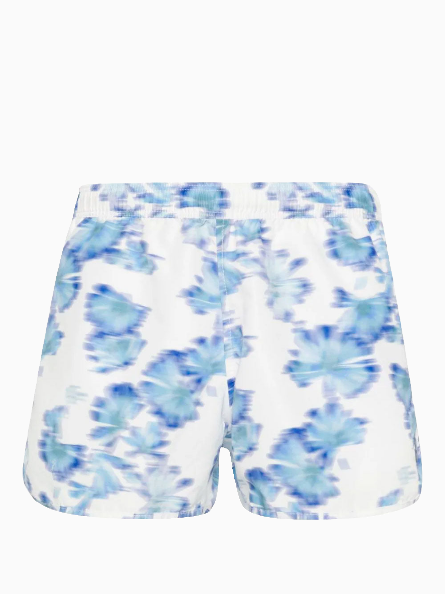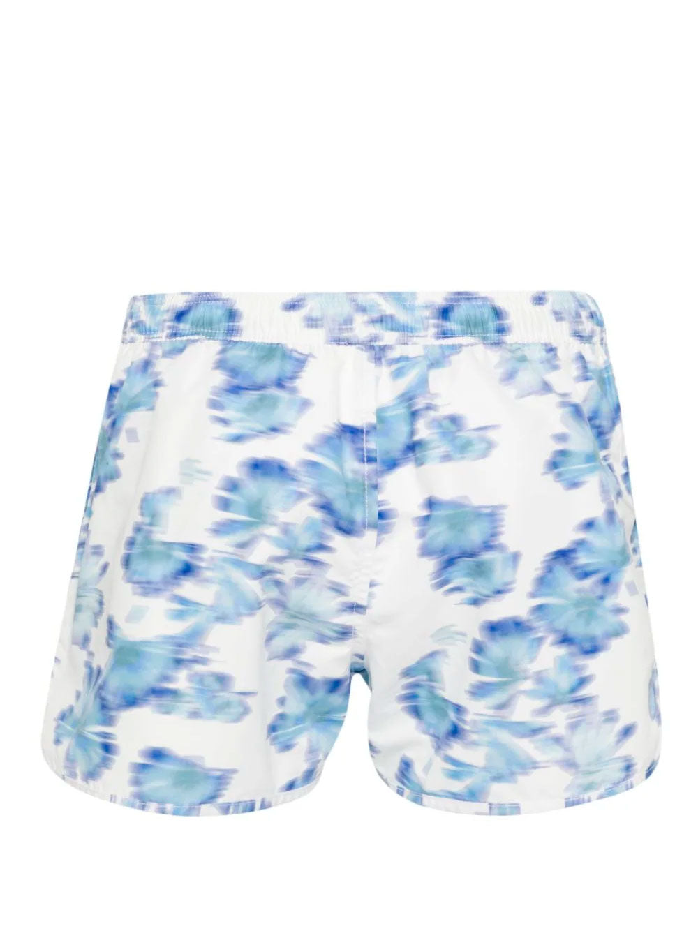 Shorts de baño Vicente de ISABEL MARANT, confeccionados en tafetán blanco/azul claro/morado lila. Con estampado abstracto, cintura elástica, dos bolsillos laterales insertados y parche con el logotipo en la pernera. Slip interior de malla, sin forro y cintura con cordón de ajuste interior.