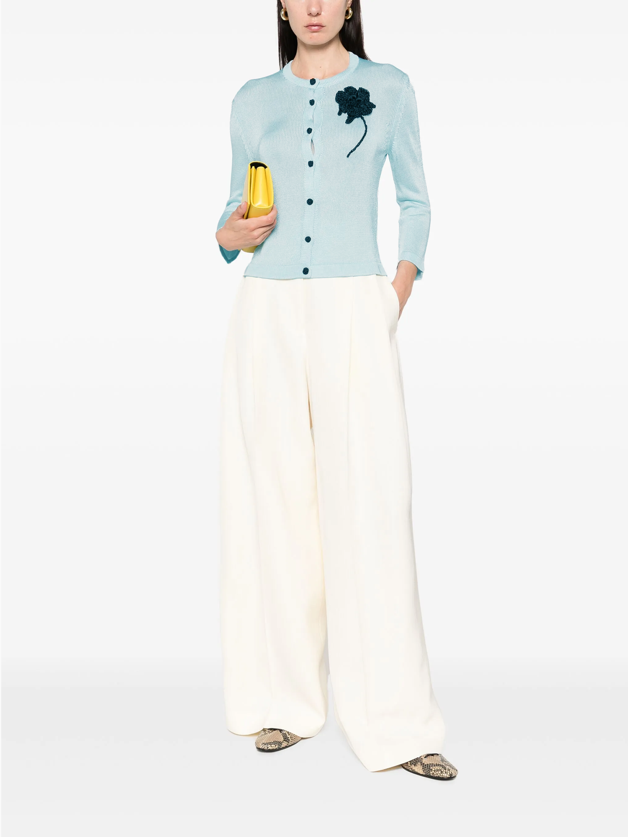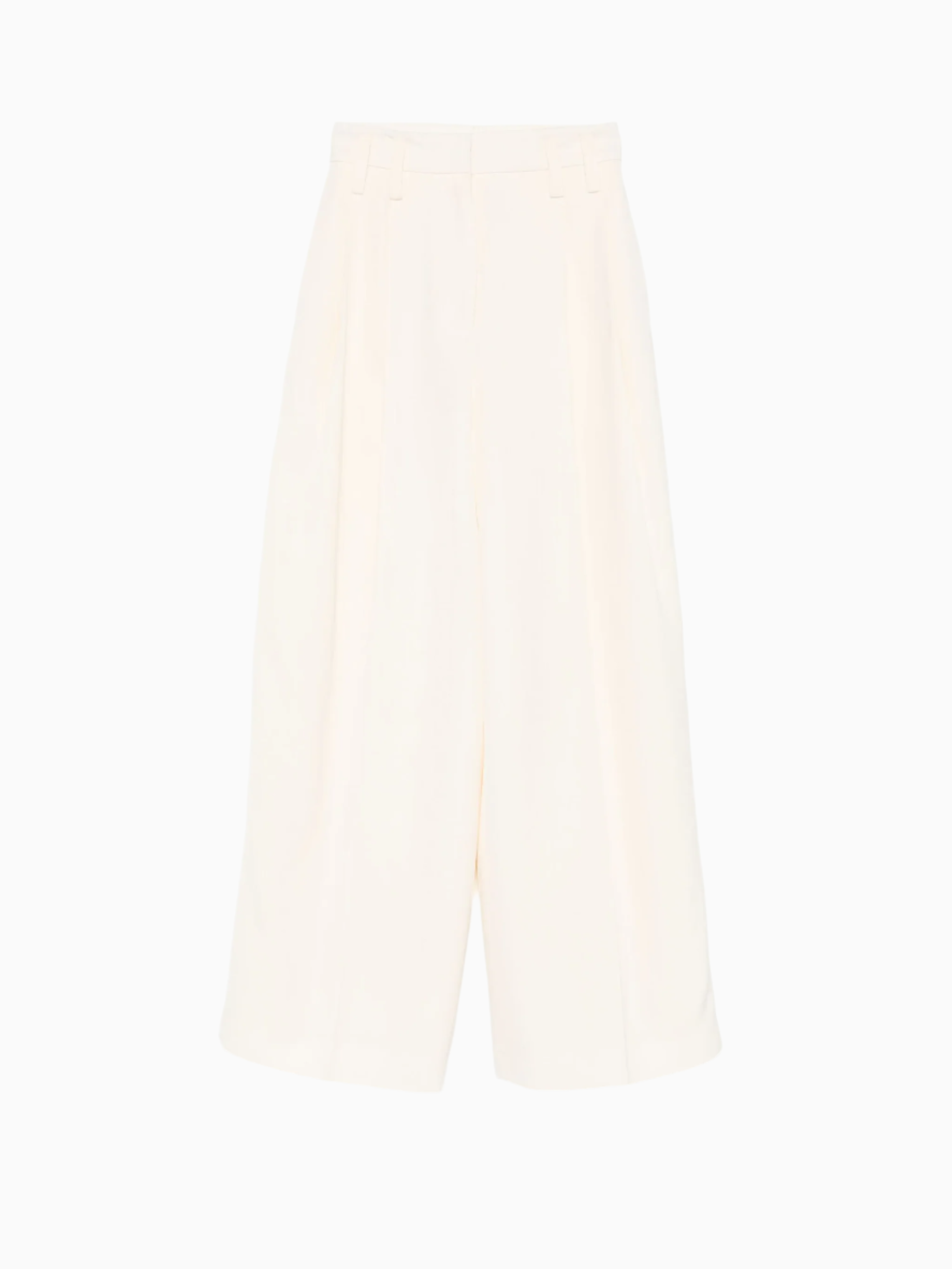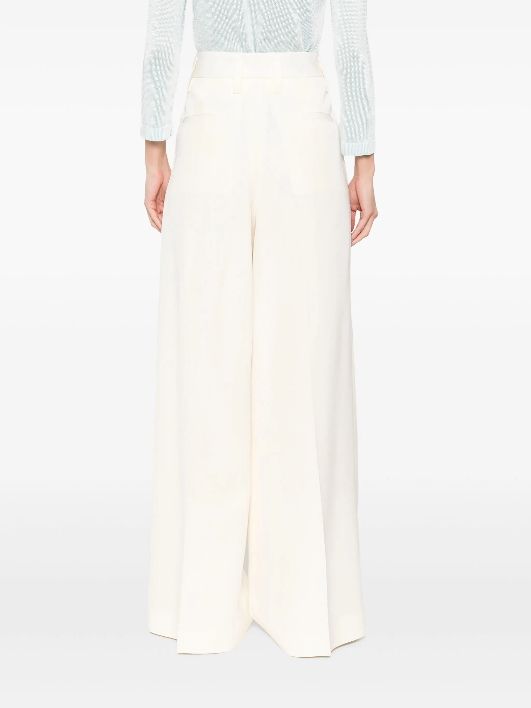 Pantalones con pinzas de Jil Sander. Confeccionados en mezcla de viscosa y seda color blanco tiza, con corte recto y ancho, pinzas, trabillas para cinturón y bolsillos traseros.