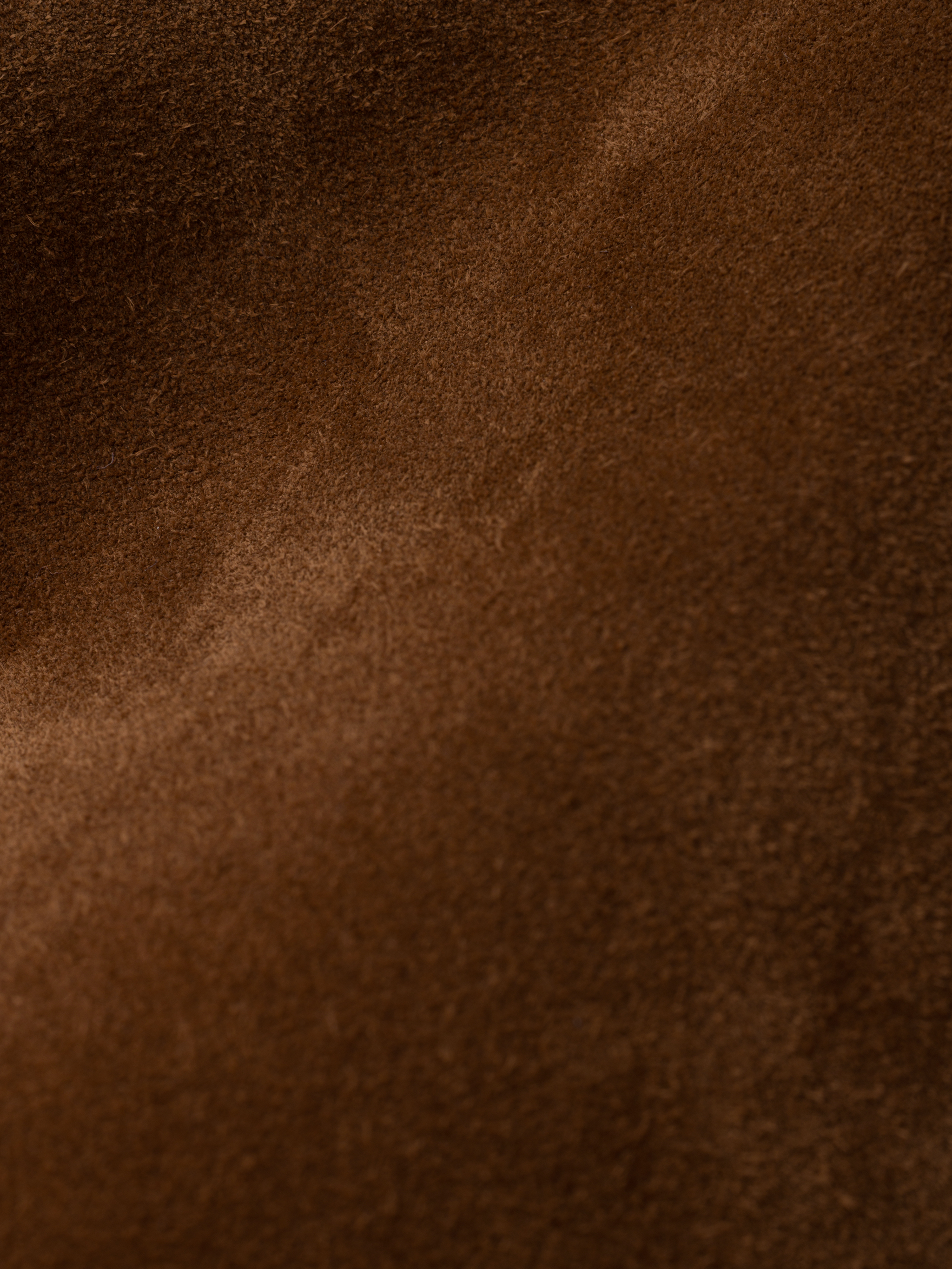 Bolso Prada Demi-lune. Confeccionado en ante marrón cacao con un diseño suave y ligero, y asa ajustable de ante para llevar cruzado o al hombro. Cuenta con llavero extraíble, herrajes metálicos y logotipo triangular de metal esmaltado en la parte delantera. Cierre de cremallera e interior de piel con bolsillo de parche.