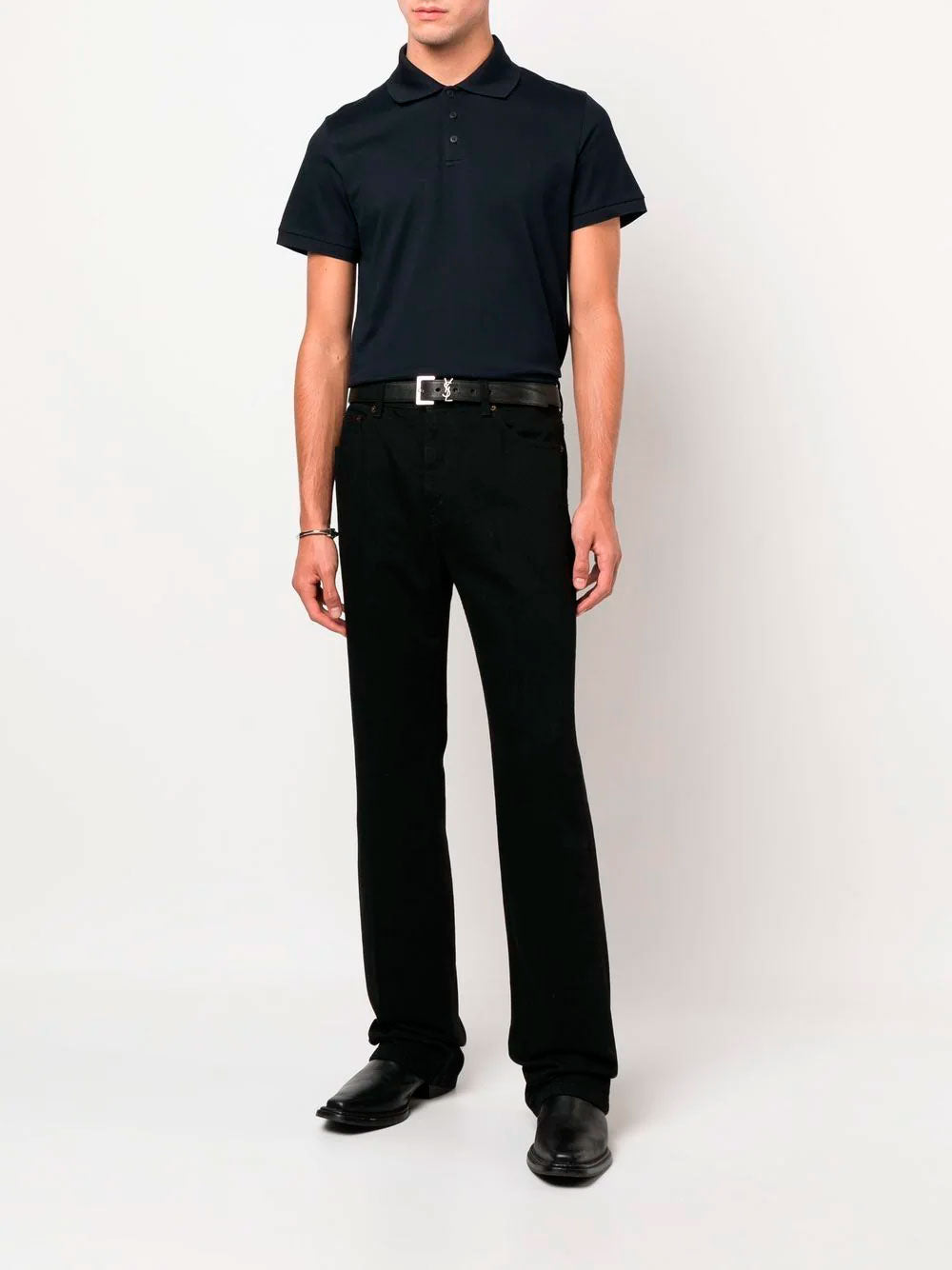 Polo de Saint Laurent en algodón azul medianoche. Con cuello de polo, botones en la parte delantera, manga corta y dobladillo recto.
