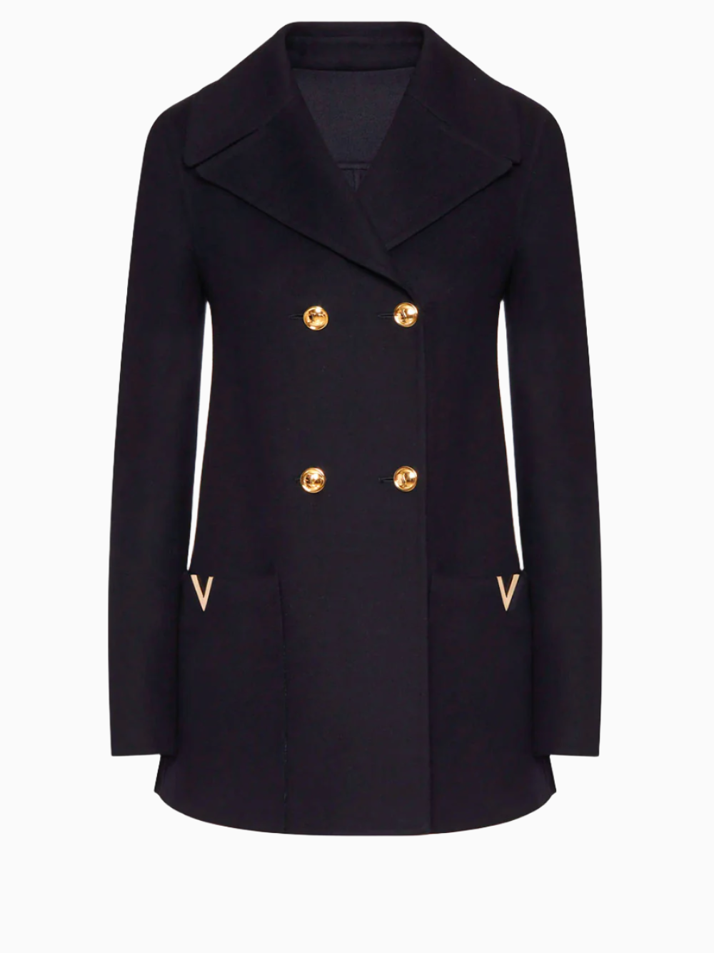 Chaqueta marinera Compact Drap de Valentino. Cierre con botones en el frente. Detalle de V Gold en los bolsillos delanteros. Compact Drap. Mangas forradas en Saglia.