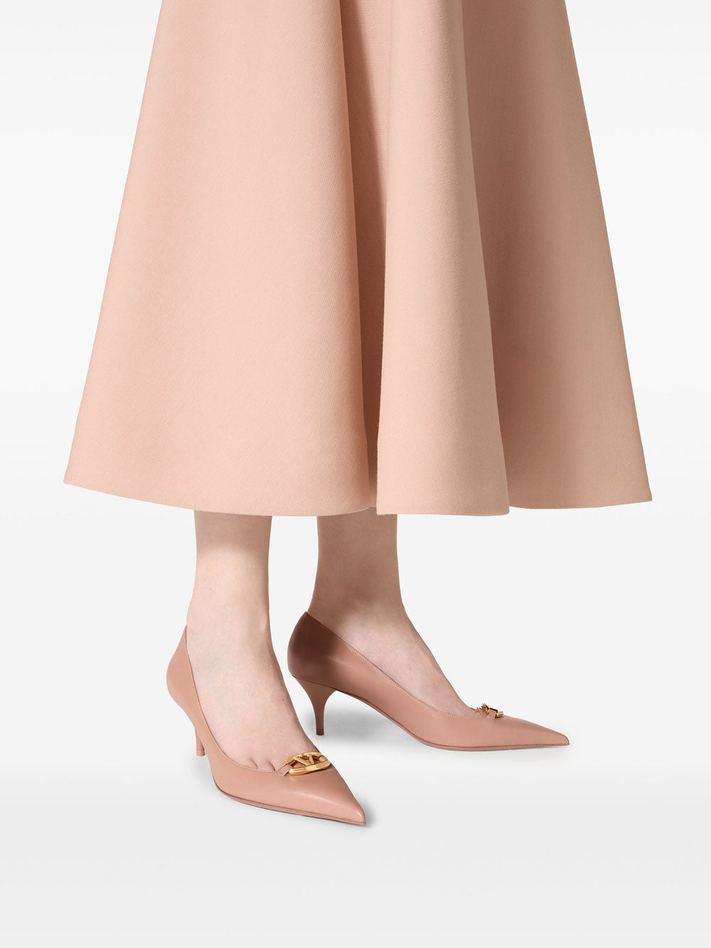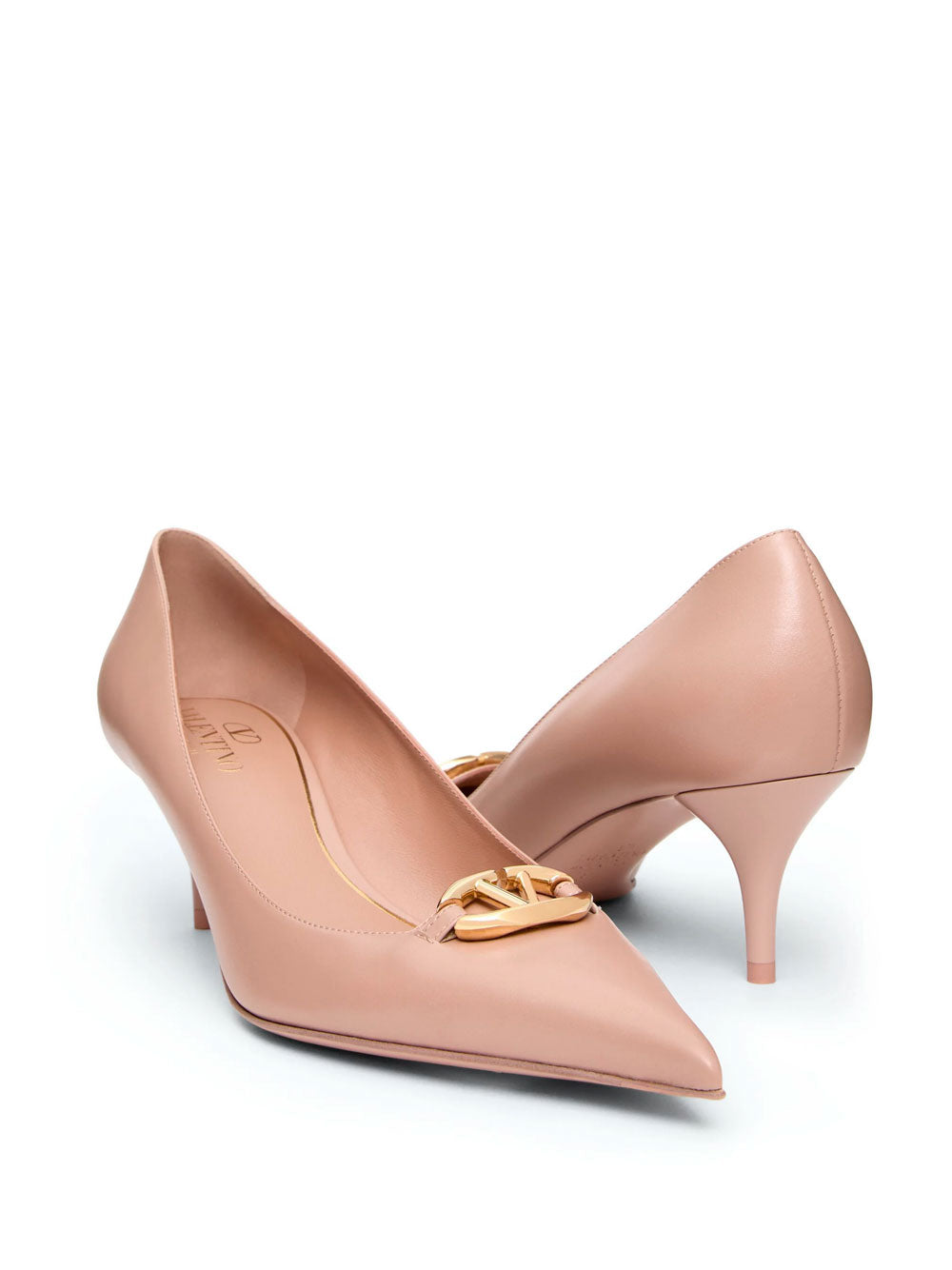Zapatos de tacón VLogo Bold de Valentino Garavani en piel rosa canela. Con aplique logotipo VLogo Signature y remate en punta. Plantilla de piel con la marca. Estilo slip-on.