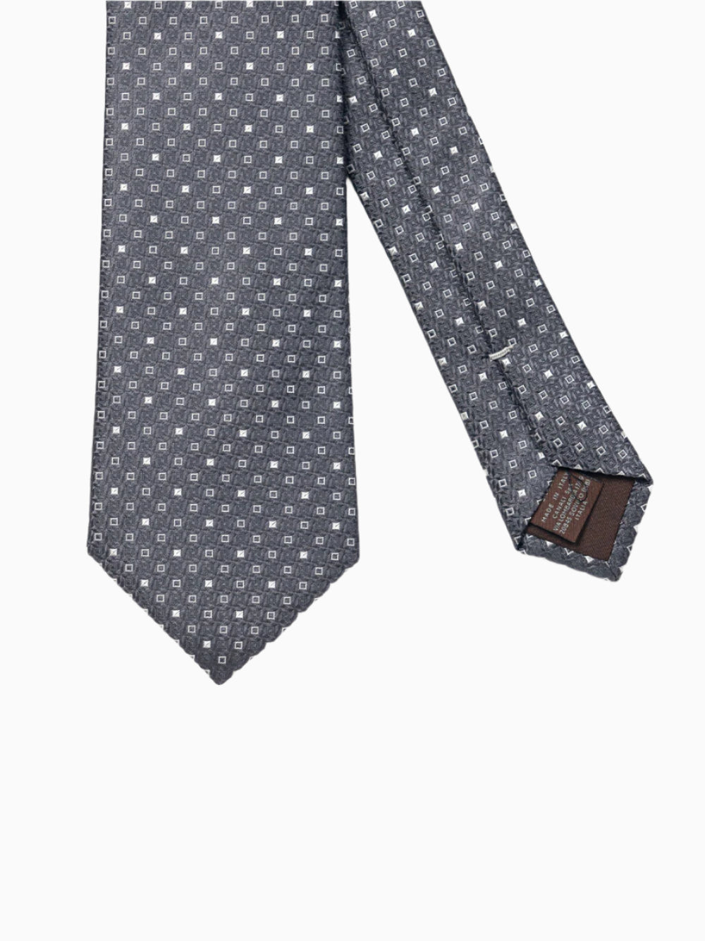 Canali silk tie featuring a microjacquard squares pattern in grey.