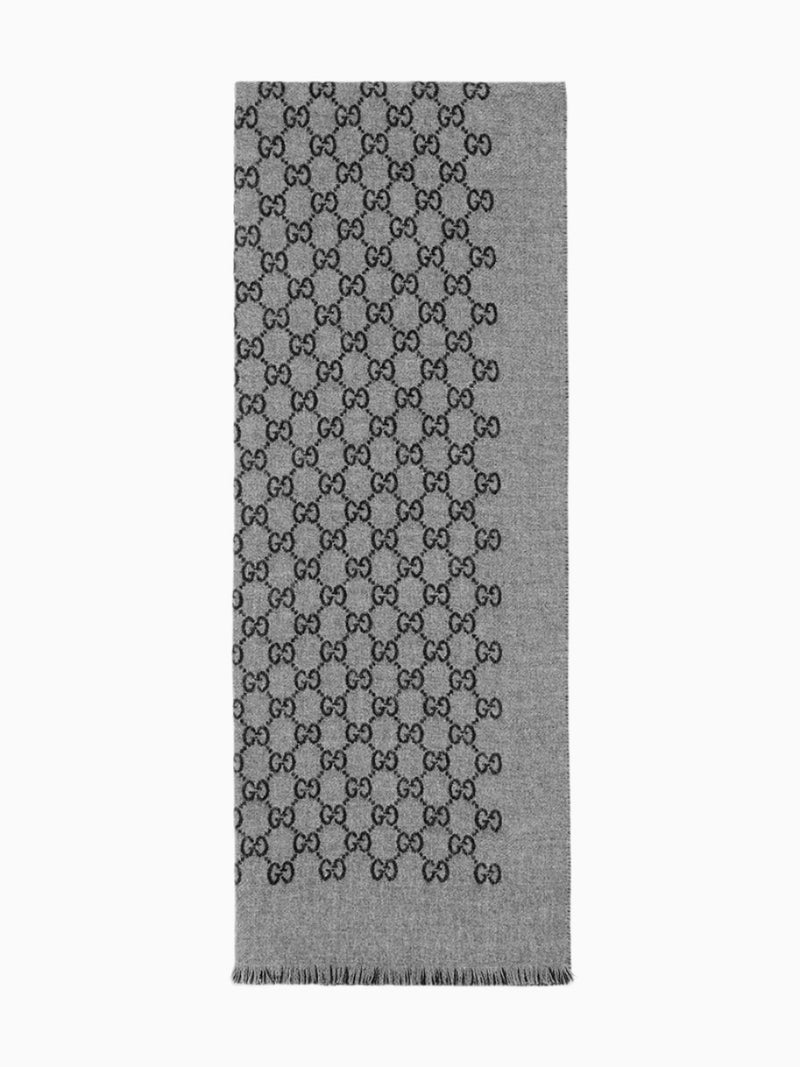 Double jacquard GG wool scarf