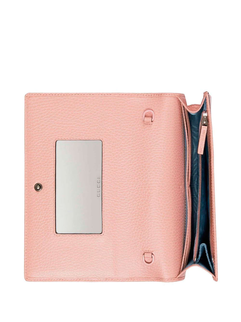 Gucci nude leather mini bag. Featuring logo plaque, chain-link shoulder strap, foldover top, internal mirror and internal zip-fastening pocket.