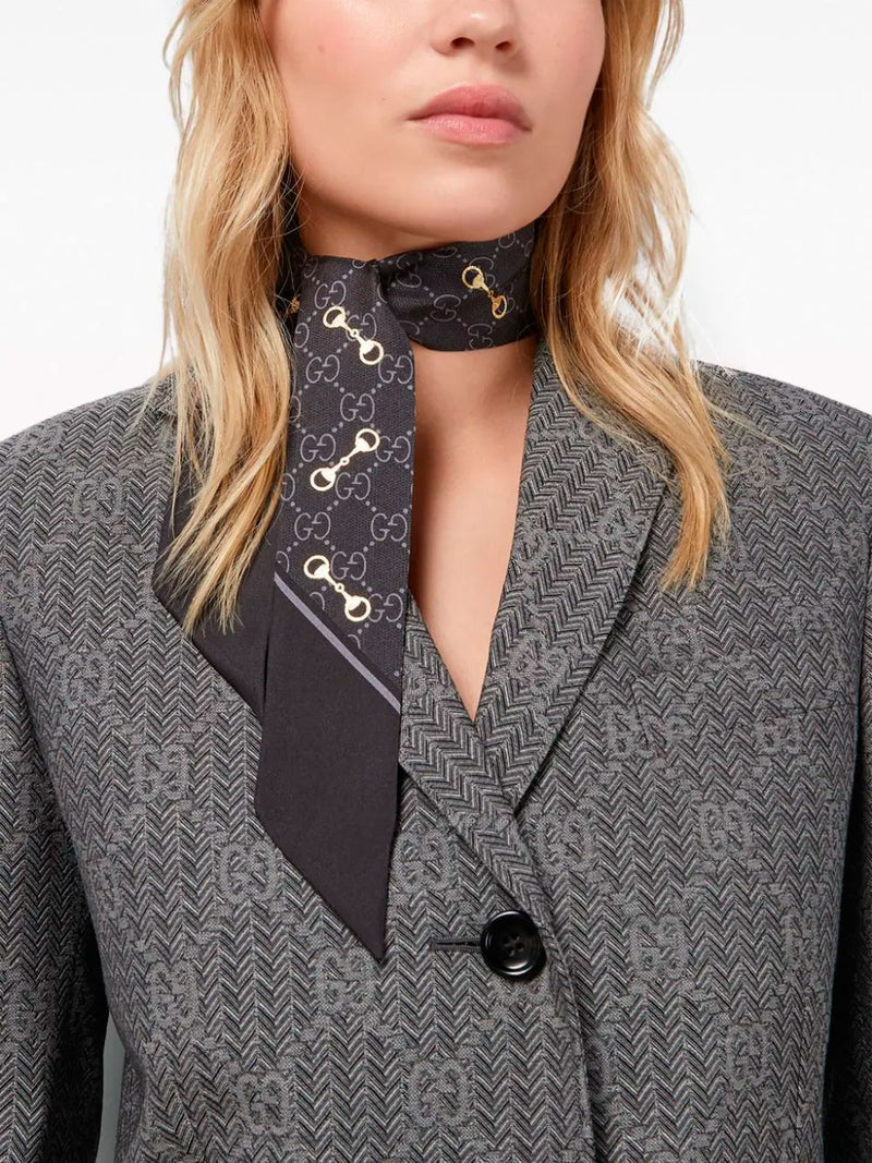 Gucci Horsebit-print bow in black silk, with a satin weave. Featuring signature GG Supreme print, pointed tip and finished edge. Perfect as headband, neck or hair bow.
