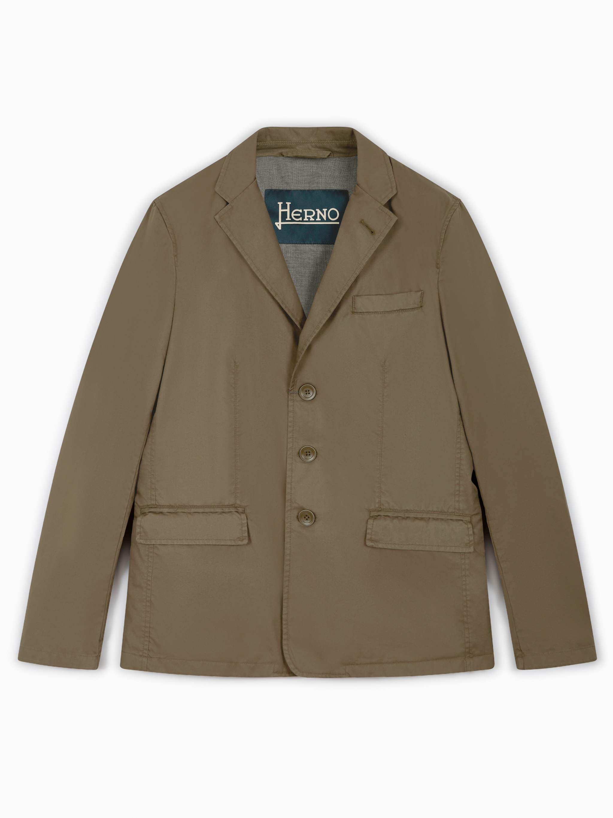 Herno gabardine jacket. Crafted in military green lightweight cotton gabardine, garment-washed with a water-repellent finish, three-buttons fastening and no lining.