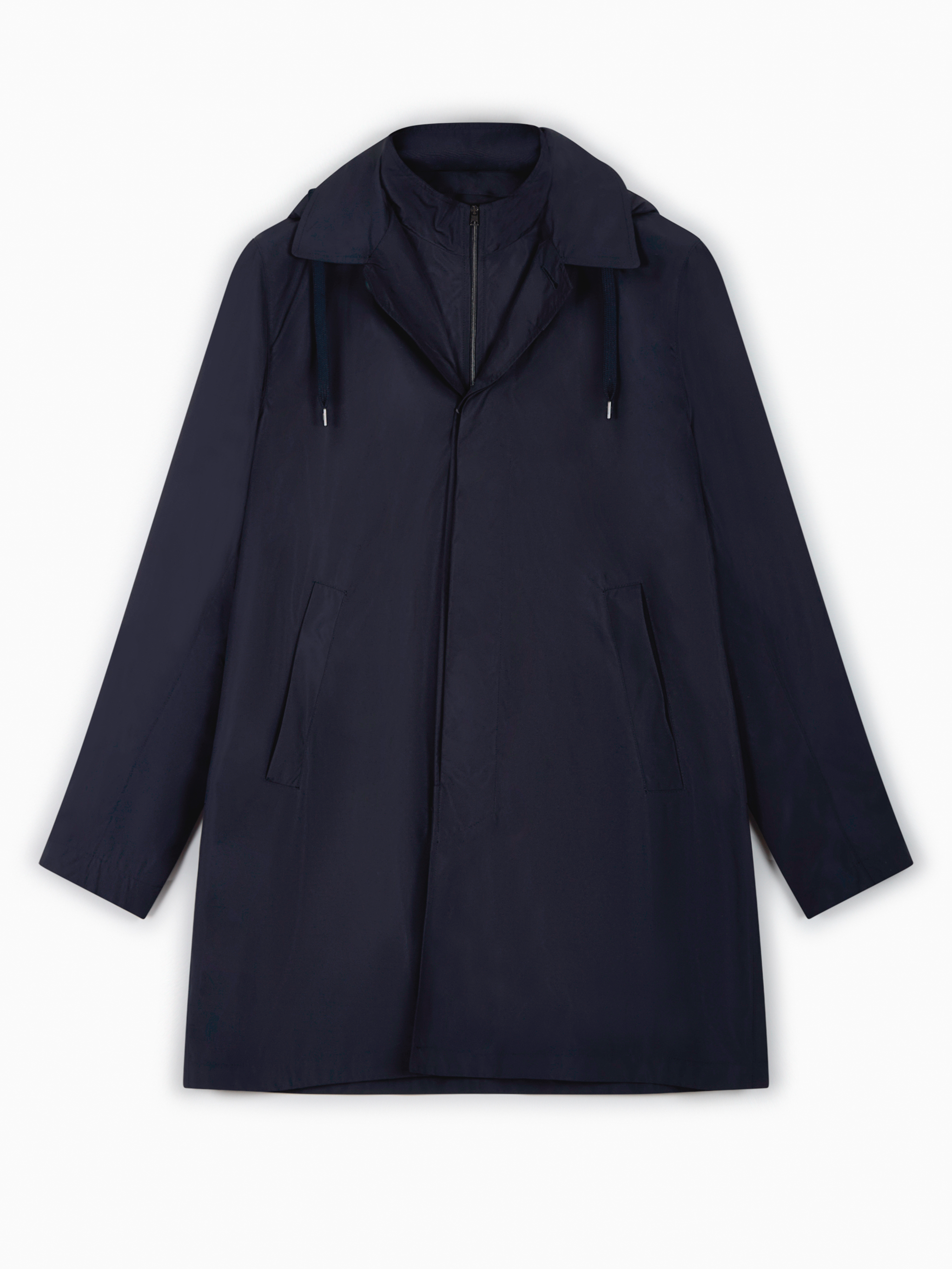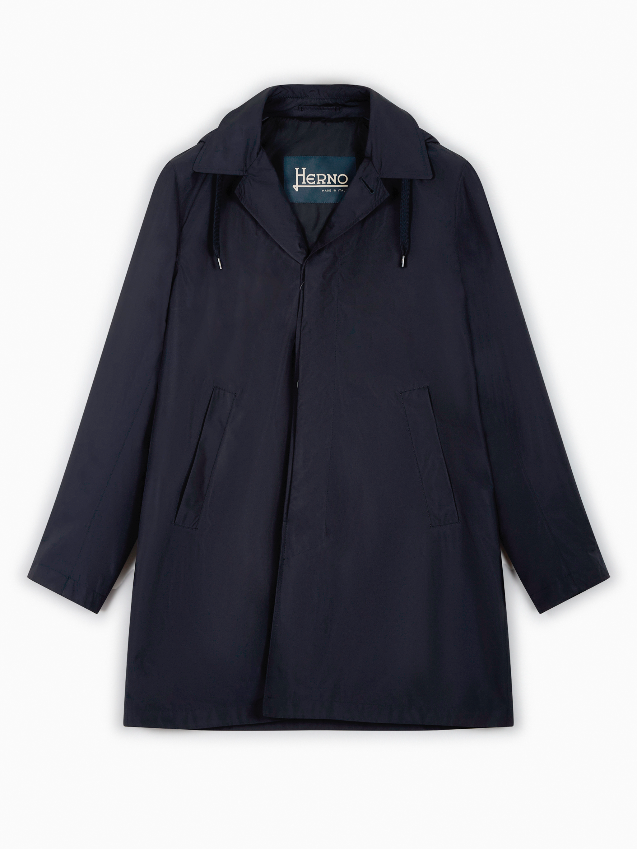 Herno windbreaker parka. Crafted in navy blue recycled polyester with a fixed hood, a detachable zipped facing and a wind and water resistant fabric.