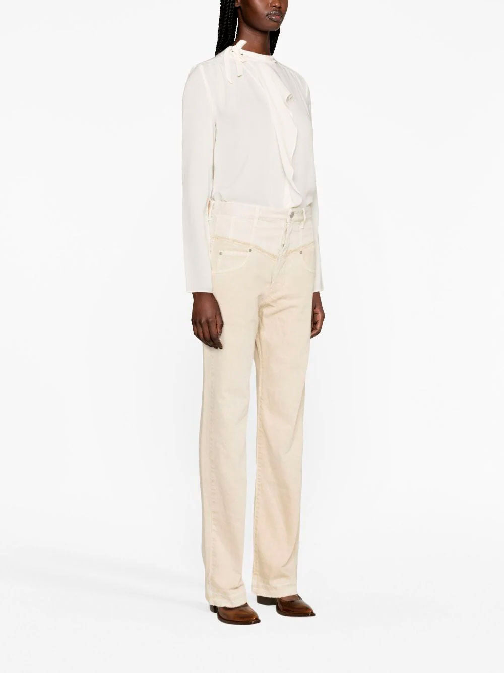 Isabel Marant white shirt with ruffled detailing to the front. The design presents pleat detailing, gathered tie neck, long sleeves and straight hem.
