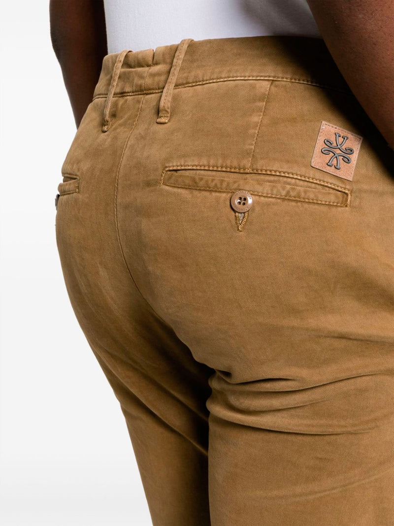 Jacob Cohen´s bobby slim-cut chino trousers in toffee brown stretch-cotton, mid-rise with appliqué logo. Featuring a concealed fly and button fastening, belt loops, two side slit pockets, two rear welt pockets and straight hem.