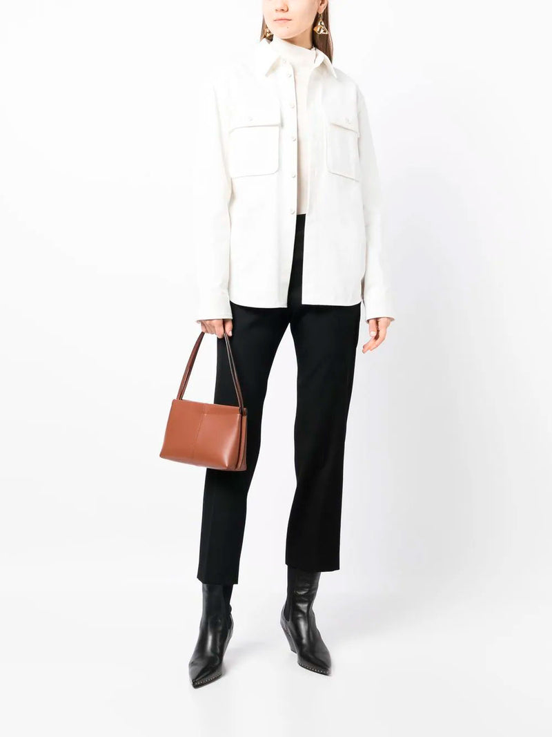 Jil Sander tailored cropped trousers in black virgin wool. Featuring concealed front fastening, two side diagonal pockets, two rear pockets, belt loops and straight hem. Straight leg.