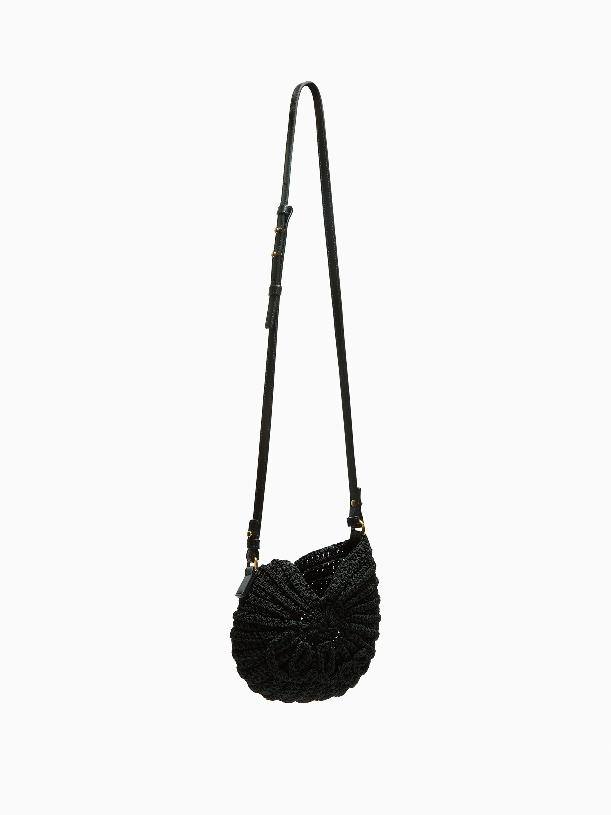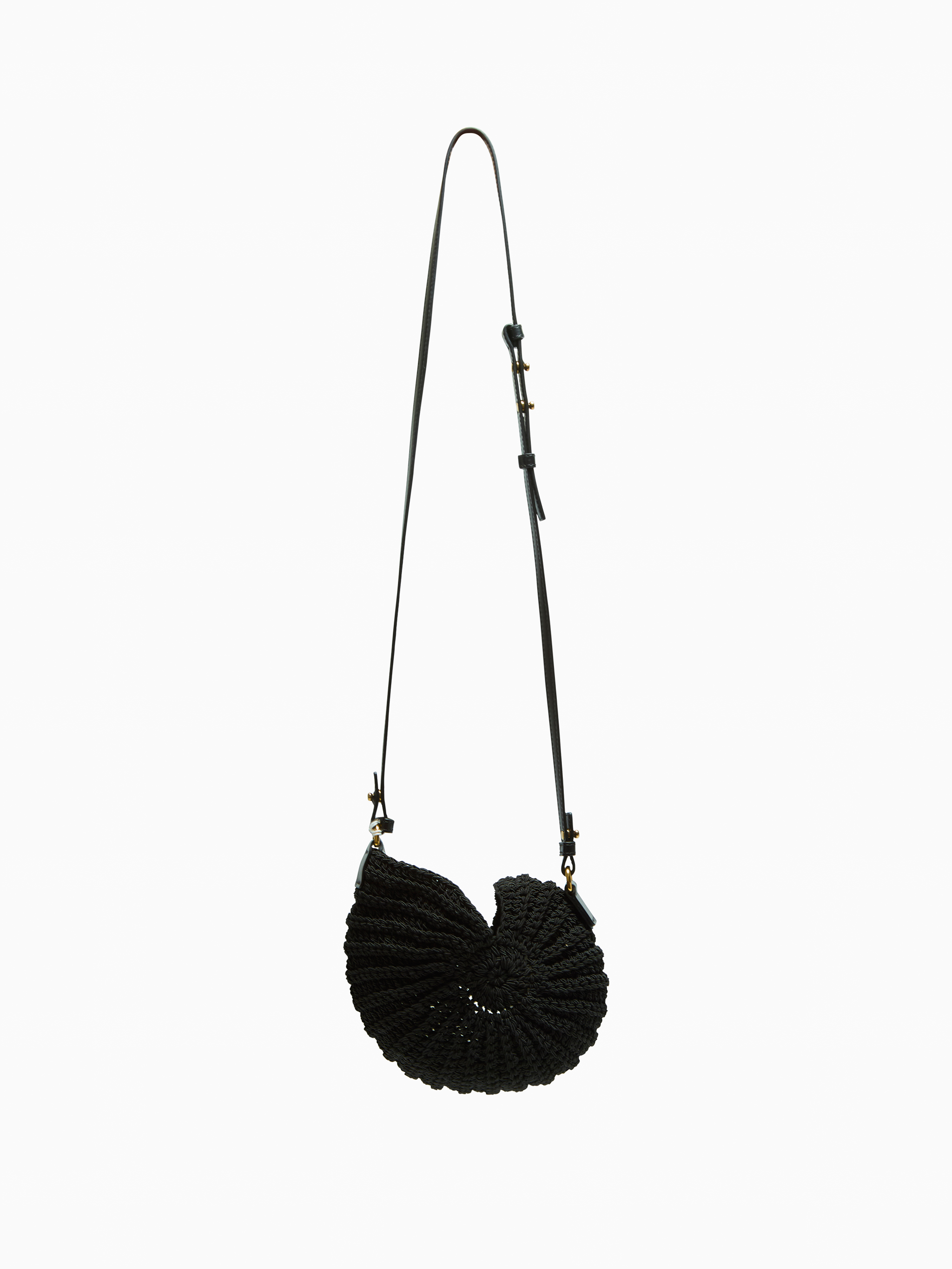 Chloé Sea Treasures crochet bag. The Sea Treasures crossbody bag recreates a shell shape in black crochet with a tonal handwritten Chloé signature and one main compartment. To carry on the shoulder or crossbody with the leather strap. Comes with a dustbag.