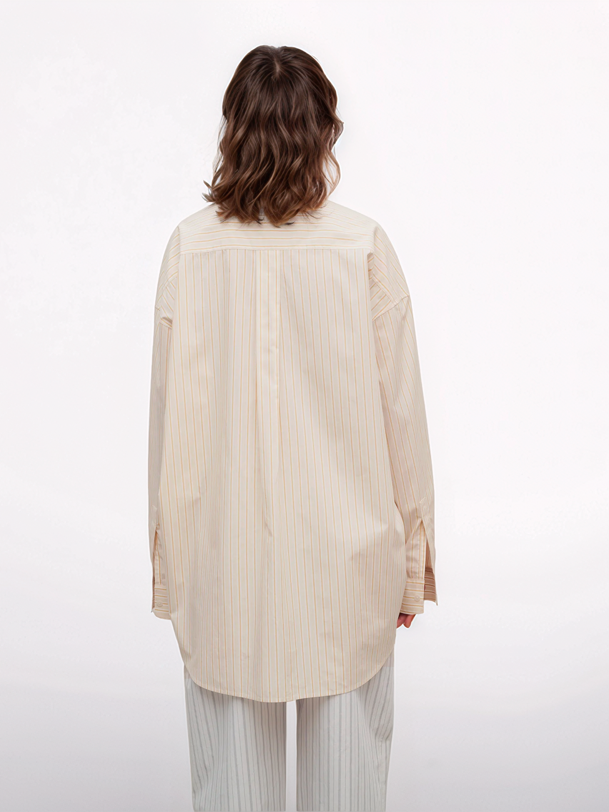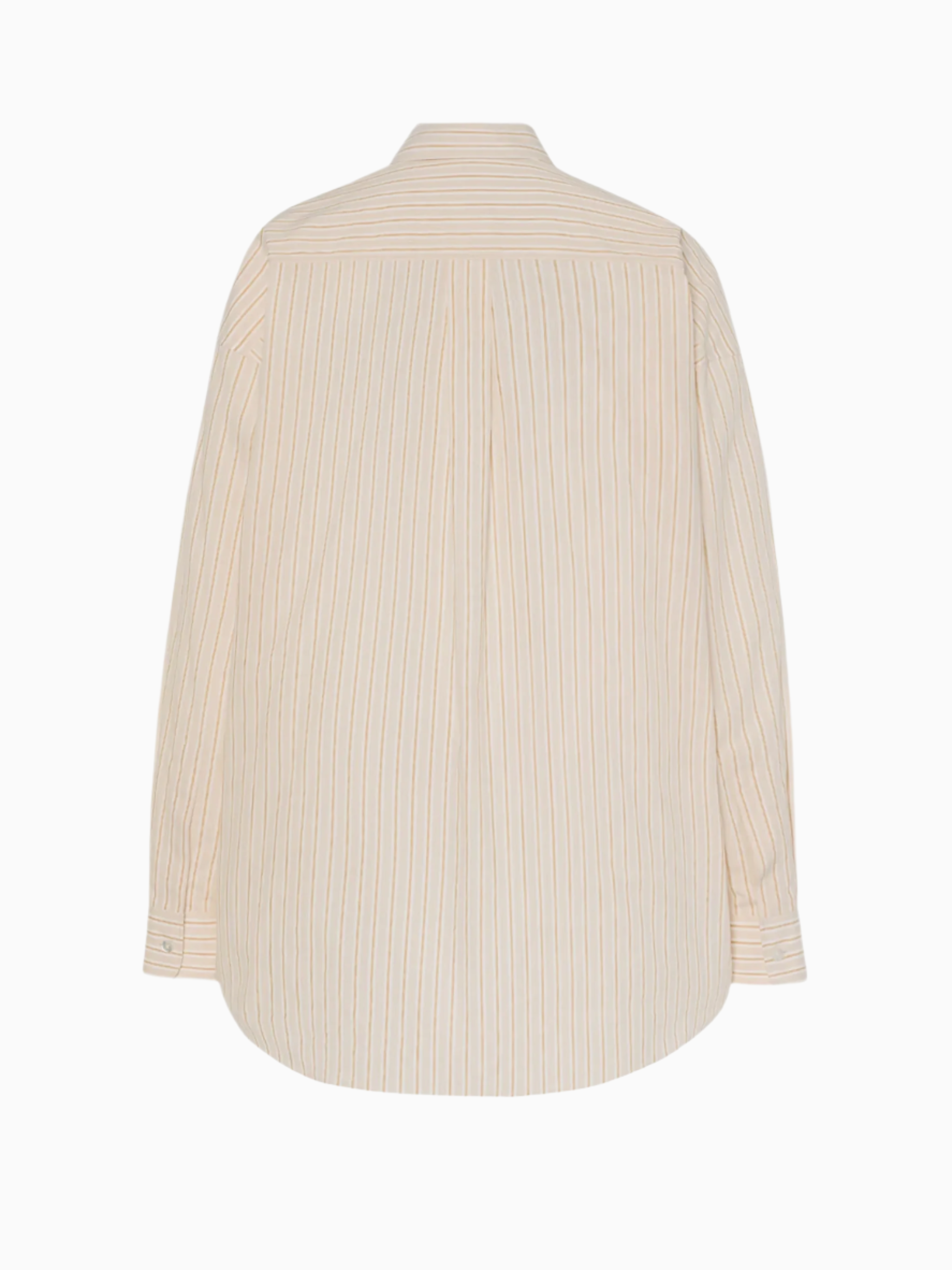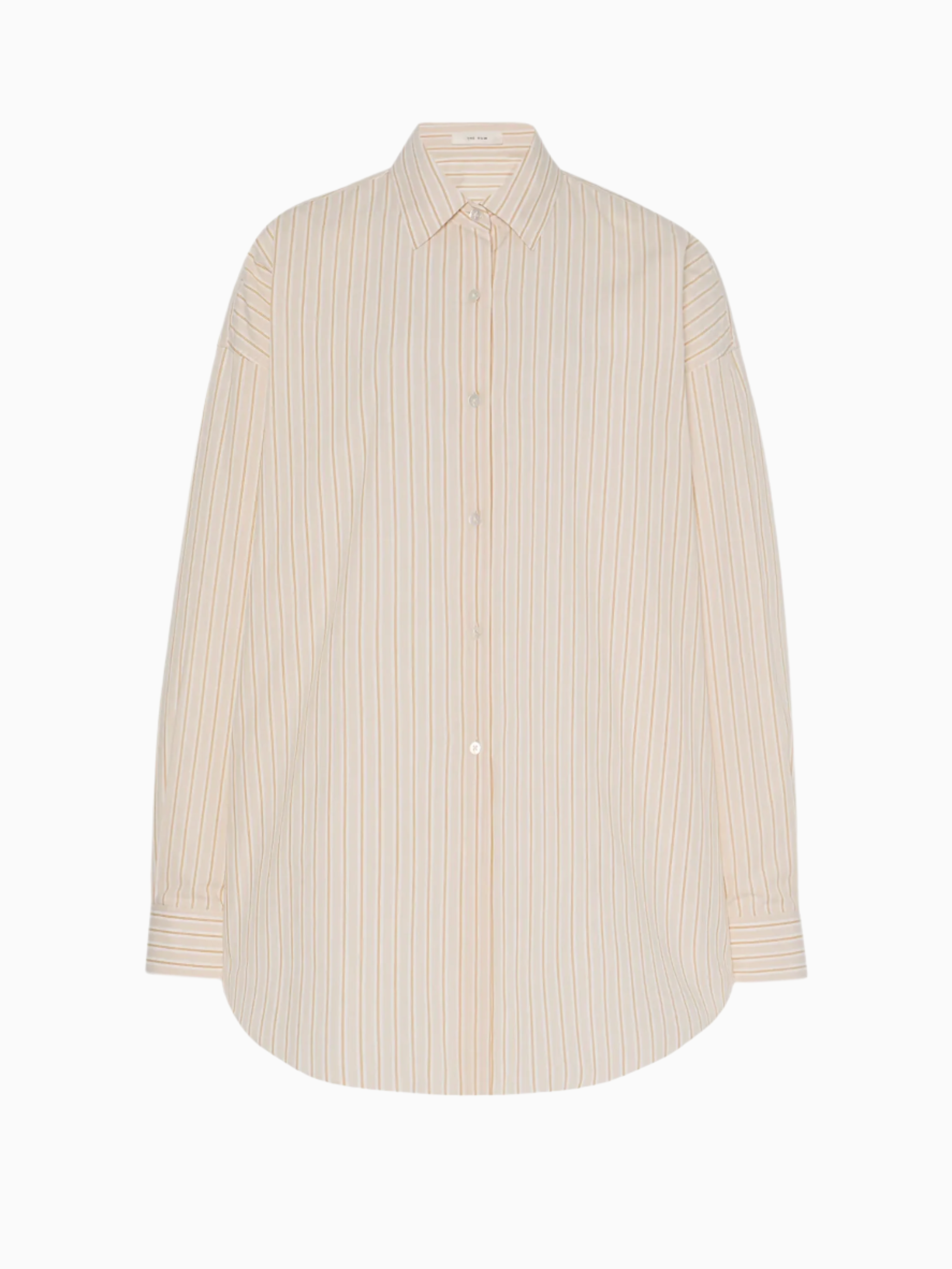 The Row Caster shirt. Crafted in beige and orange washed organic cotton poplin with a relaxed button-up design. Featuring an exposed front placket with mother-of-pearl buttons, curved hem and back yoke with box pleat.