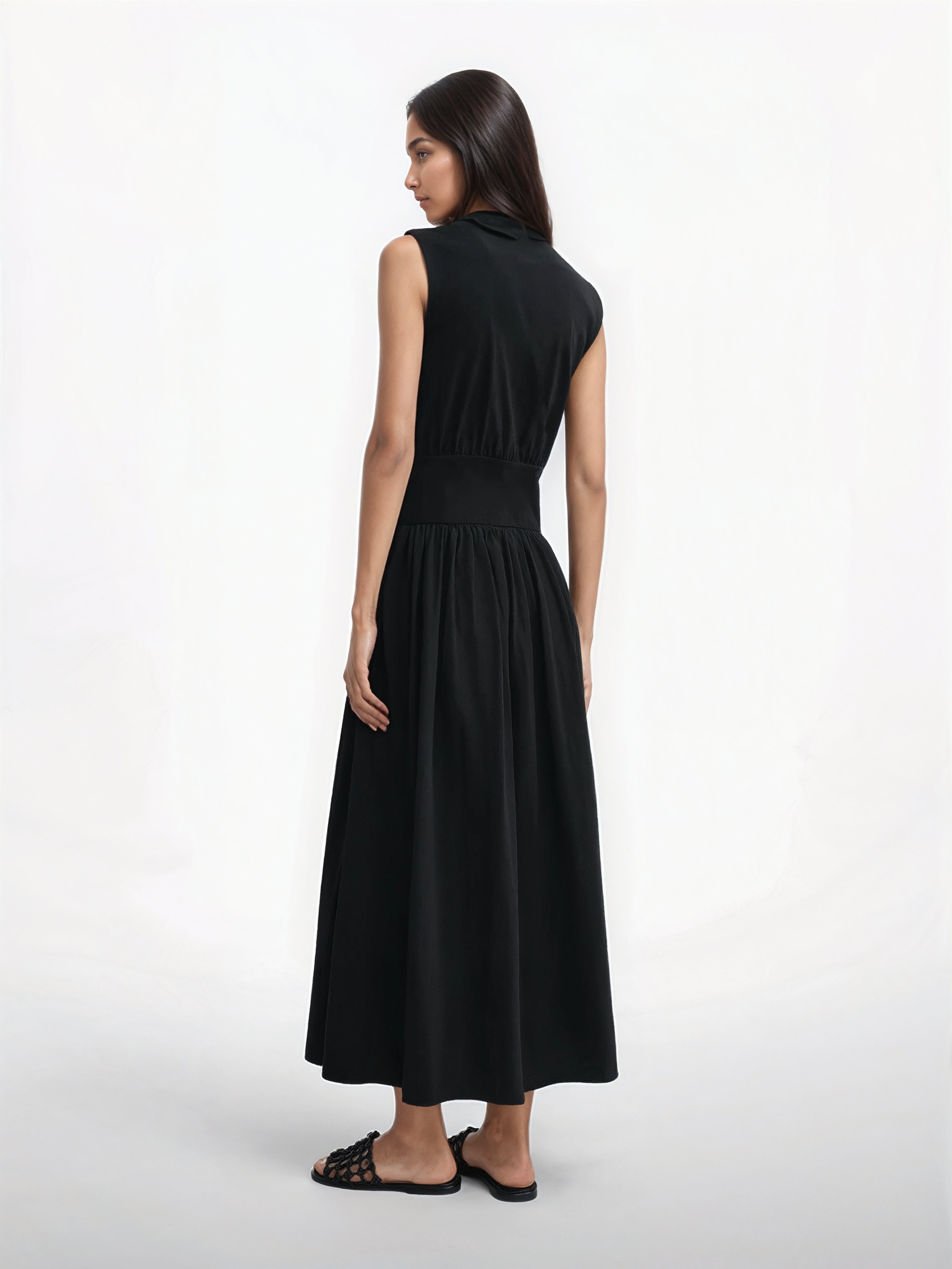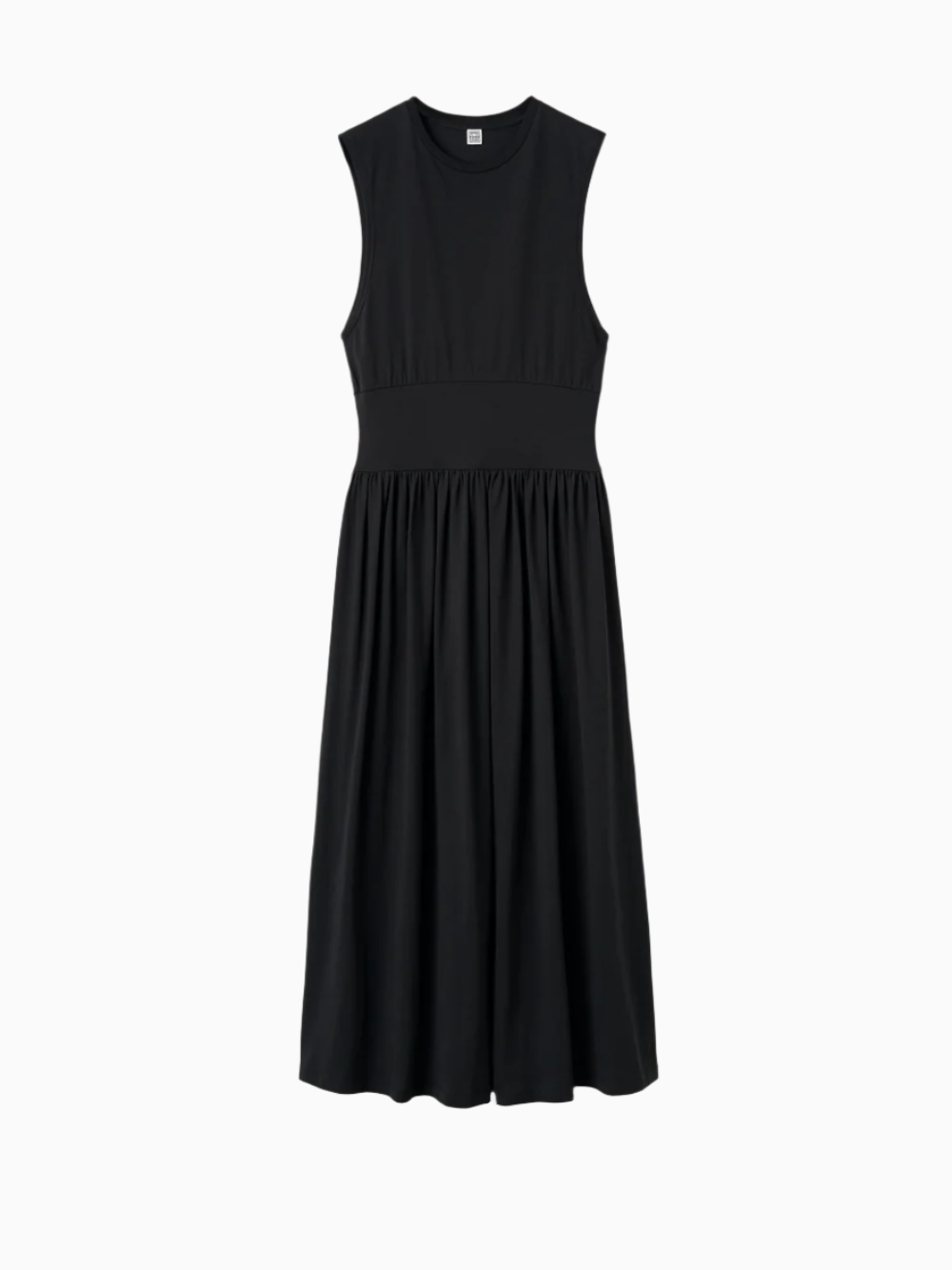 Toteme sleeveless dress. Tee dress crafted in black mid-weight organic cotton jersey with a sleeveless torso and slide pockets.