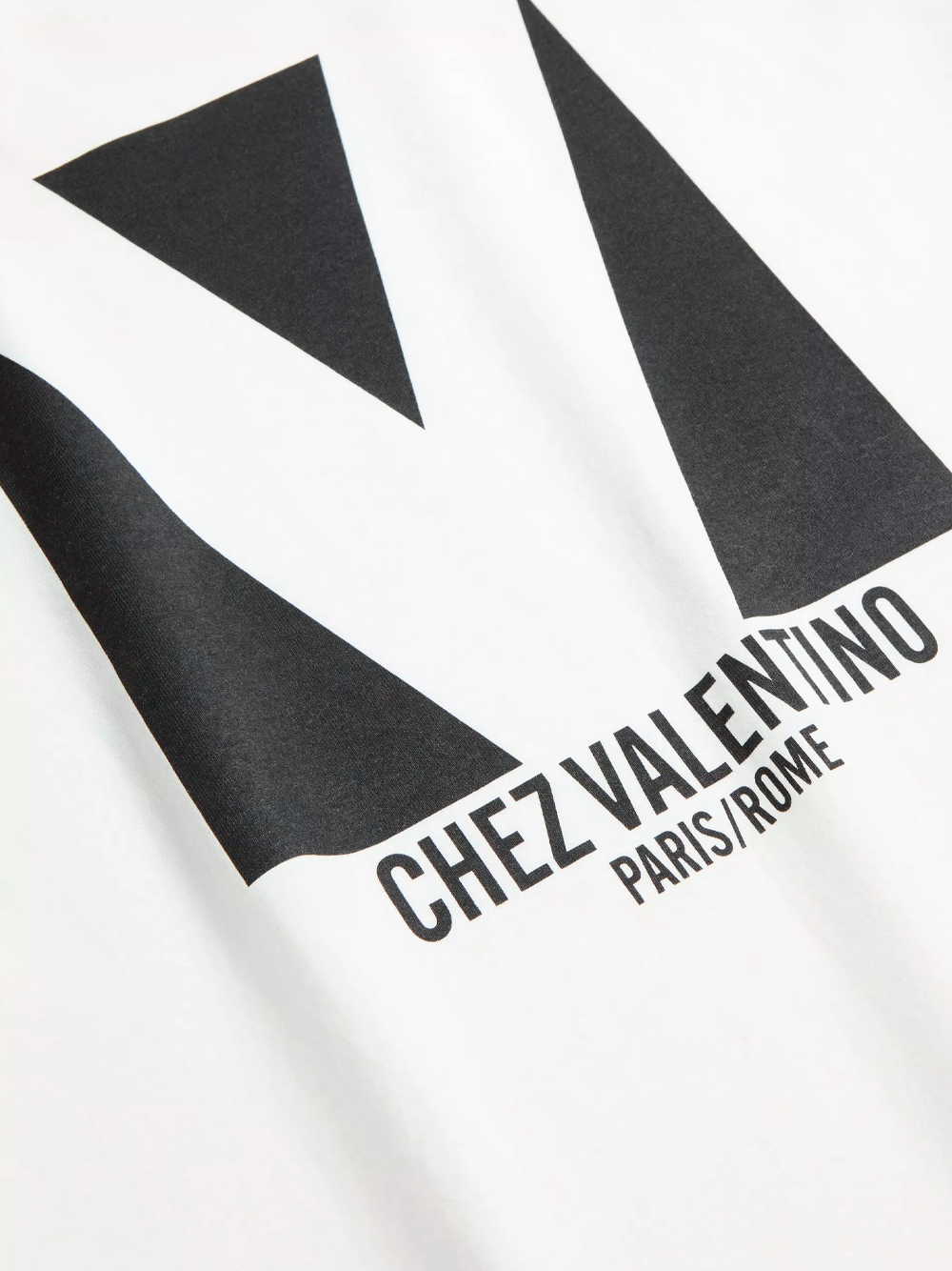 Valentino Garavani jersey cotton T-Shirt with Chez Valentino print featuring Ivory colour and print in black. Regular fit.