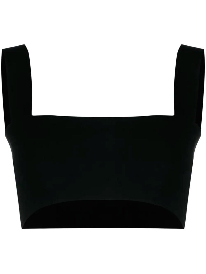 Victoria Beckham black top. Featuring a square neck, sleeveless and cropped design.